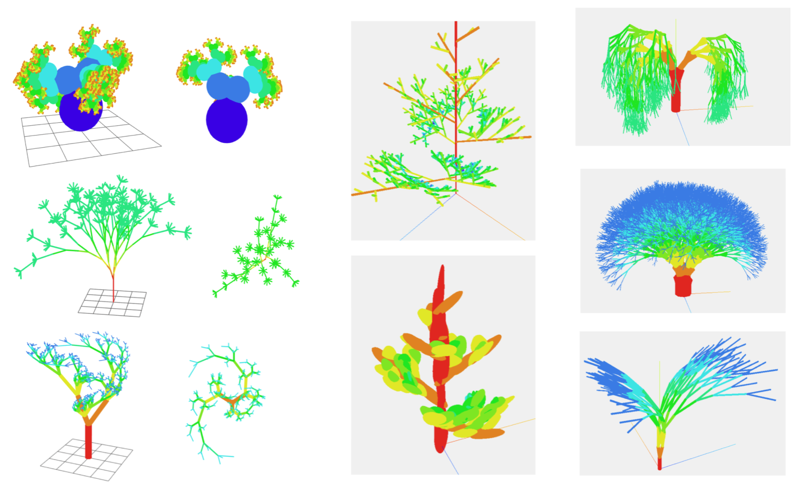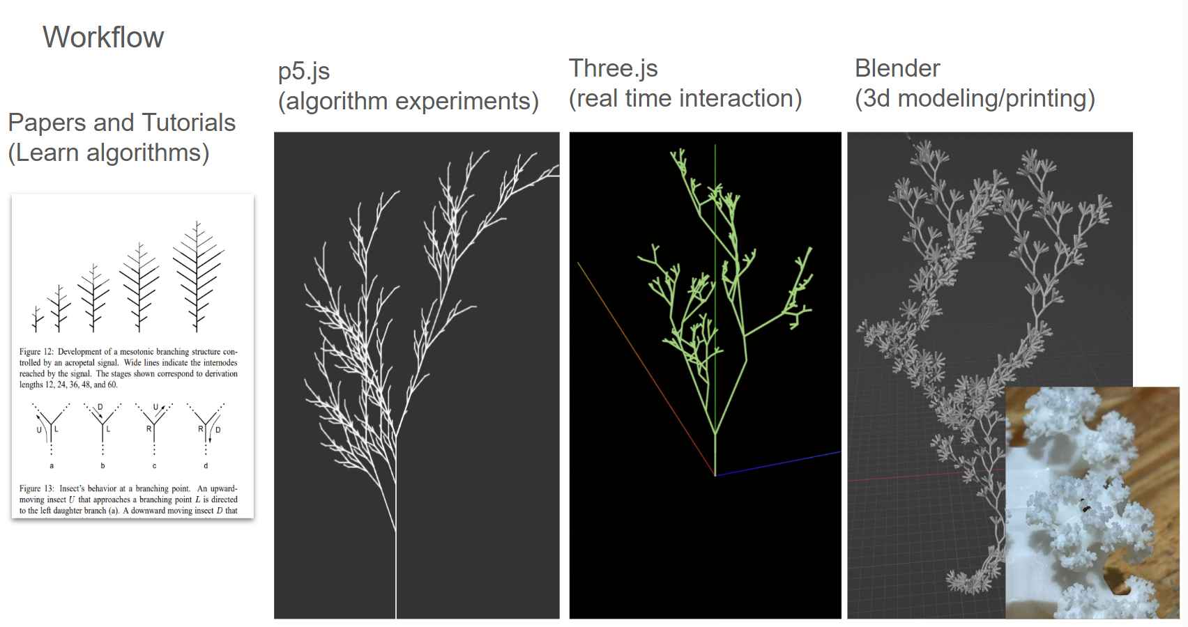 Algorithms like L-systems and cellular automata show how simple rules can give rise to countless complex results. These outcomes form what Stephen Wolfram calls a computational space: the totality of patterns that are computationally possible. Yet nature, constrained by material and environmental limitations, brings only a narrow subset into physical form.