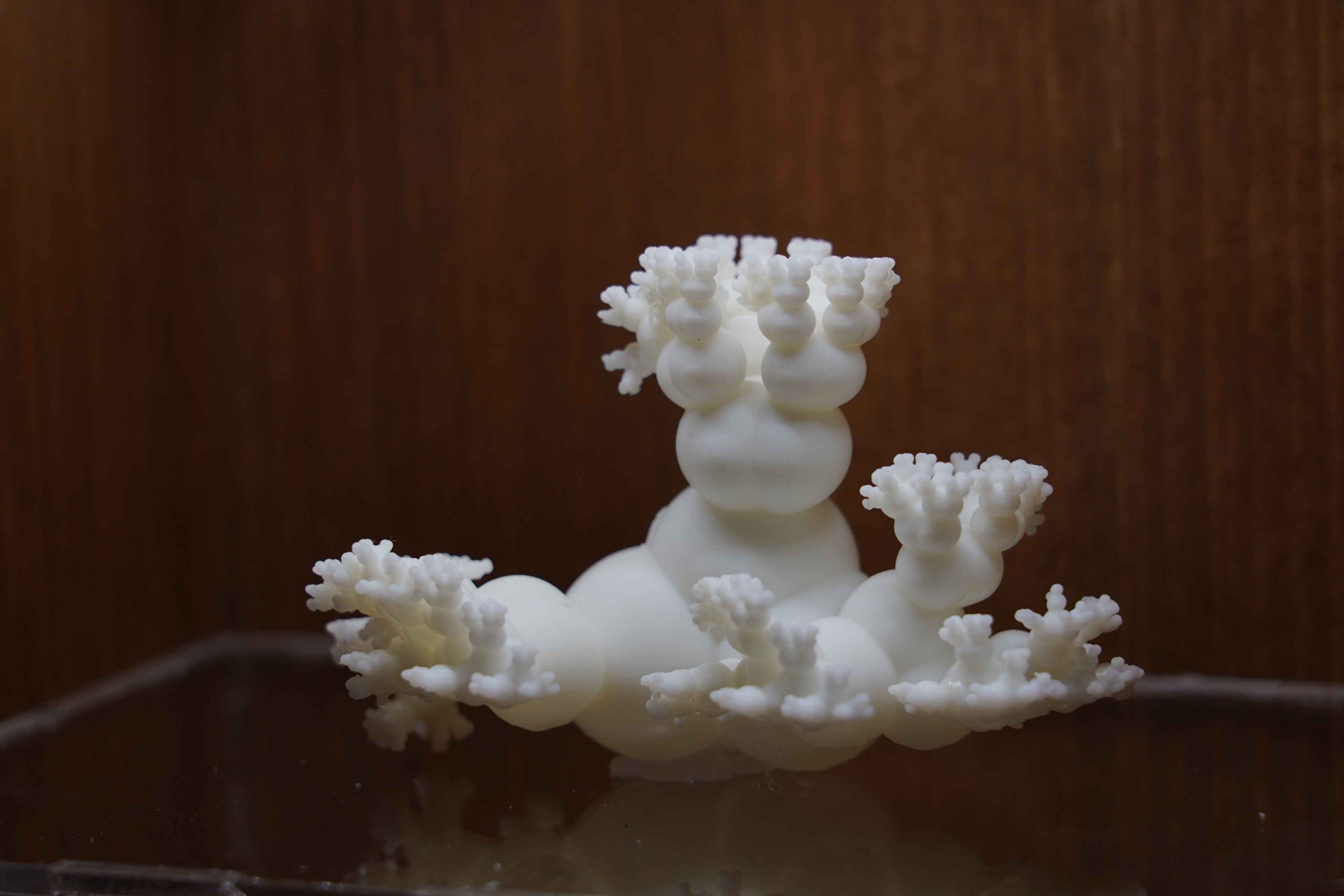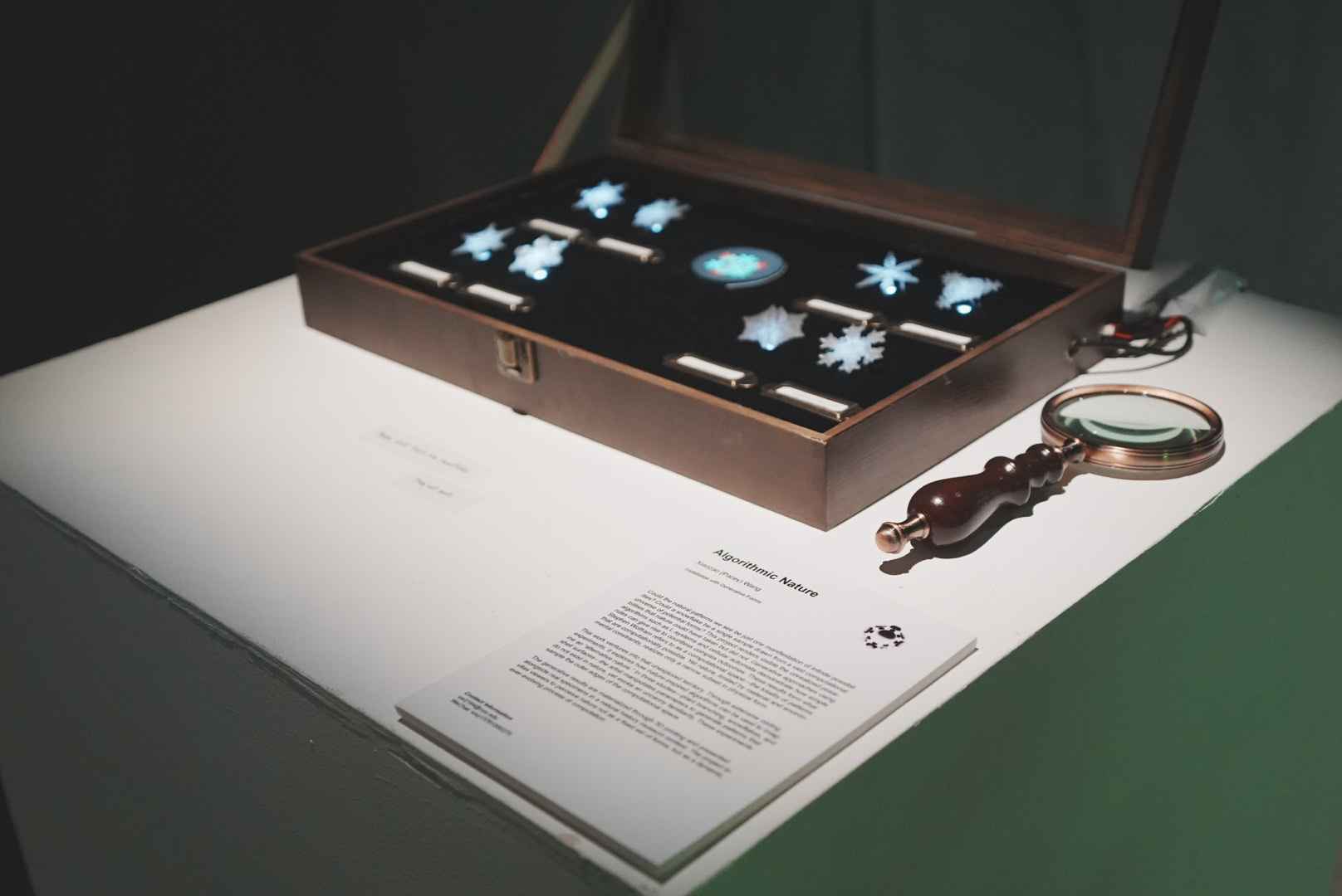 My work ventures into this unexplored territory. Through extensive coding experiments, I explore how nature-inspired algorithms can be used to imagine an “alternative nature.” In three explorations: plant branching, snowflakes, and shell surfaces, I deliberately manipulated parameters to generate patterns that don’t exist in nature but trigger uncanny familiarity. This process samples the unexplored edges of the computational space. The generative results are materialized through 3D printing and exhibited alongside real specimens in a natural history museum setting.