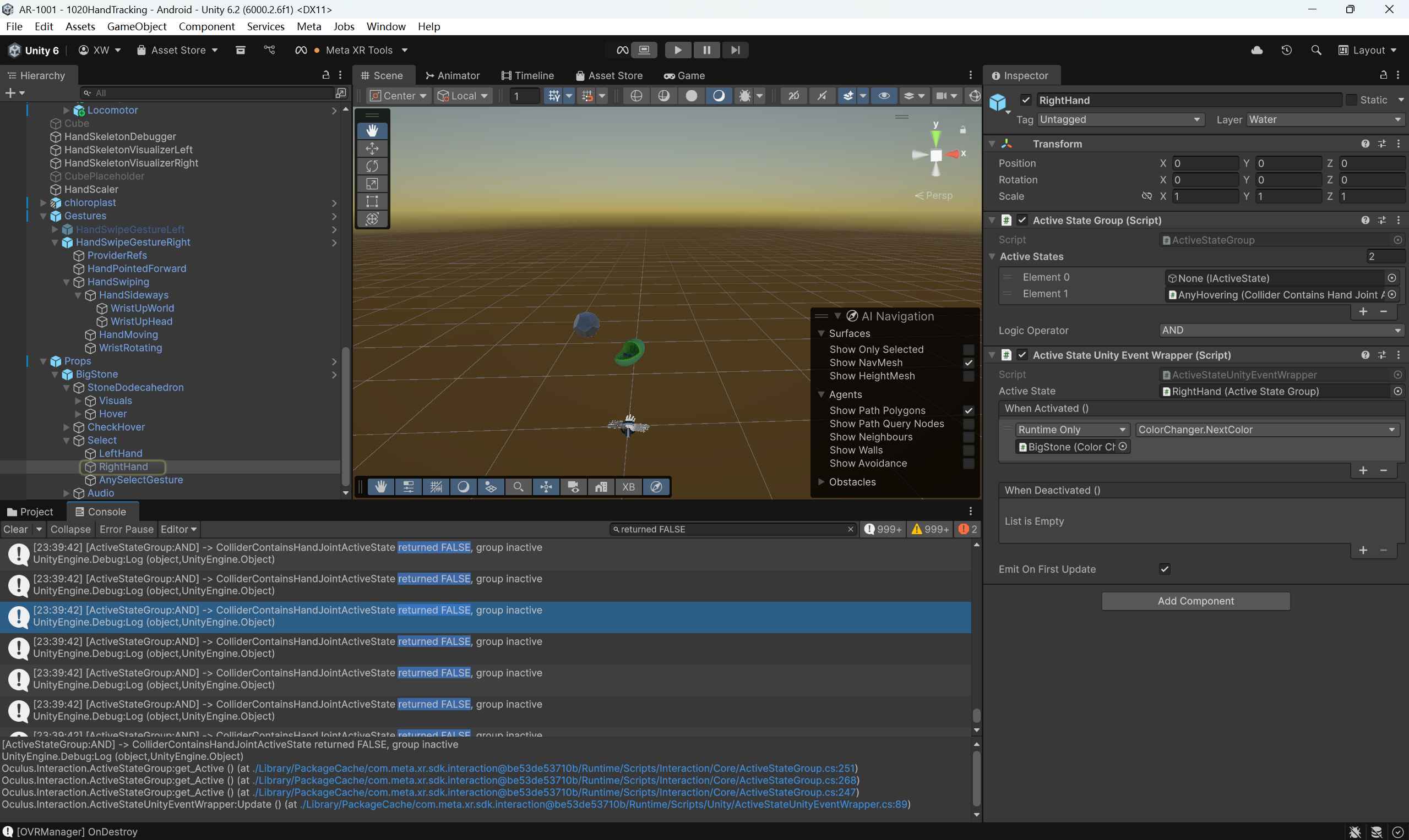 I built customized spatial control in Unity with C# scripting, including grab, pinch-and-drag to scale, swipe-to-rotate, poke, raycast-to-place-objects and so on.