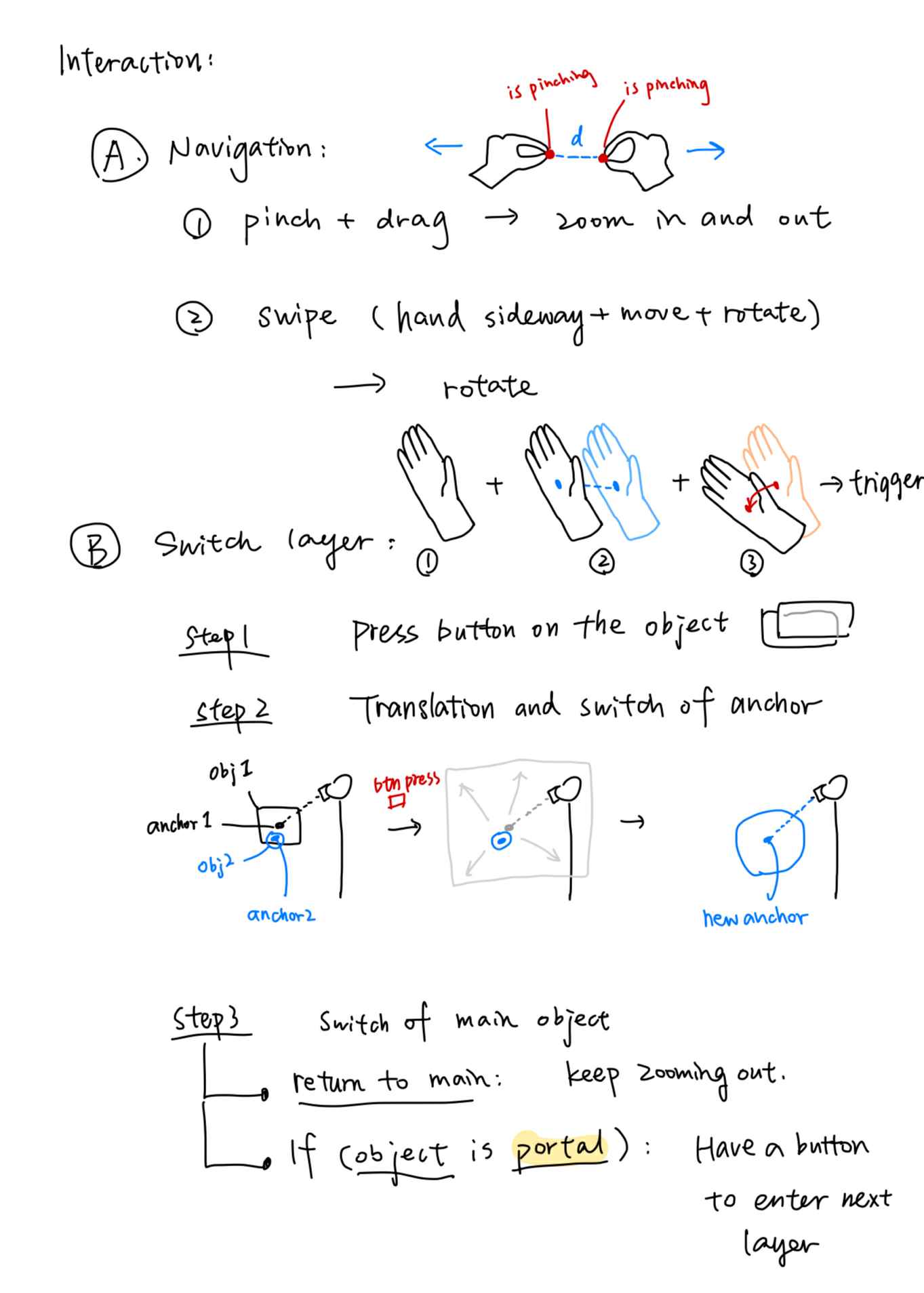 Interaction Details:Navigating different dimensions through XR spacial controls.
